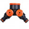 Адаптер-тройник с двумя кранам с внутр.резьбой 1" и редукторм 3/4" - 1"