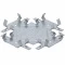 Одноуровневый соединитель «краб» предназначен для крестообразного соединения потолочных конструкций на одном уровне и во взаимно перпендикулярных направлениях. Он изготовлен из высококачественной, устойчивой к коррозии и другим неблагоприятным образованиям оцинкованной стали, весит всего 0,09 кг. Элемент надёжно соединяется с профилем при помощи сгибающихся фиксирующих «лепестков», а также саморезов по металлу, используется при монтаже каркаса из профиля ПП 60х27 мм. Стальной соединитель размером 148х148 мм имеет толщину 0,55 мм, незаменим в каркасе подвесных потолков из гипсокартона и в процессе соединения отрезков несущих потолочных профилей.