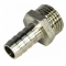 Штуцер под шланг с наружной резьбой - резьбовой фитинг, предназначенный для подключения поливочного шланга к водозапорной арматуре или непосредственно к трубопроводу. Изделие можно применять также в других системах с неагрессивной к используемым материалам рабочей средой (горячая вода, незамерзающий теплоноситель, сжатый воздух и т.д.). Штуцер изготавливается из горячепрессованной латуни. Дополнительный запас прочности обеспечивается за счёт покрытия никелем, предотвращающим появление коррозии, а также защищающим от механического износа и вредного воздействия агрессивных жидкостей и воздушно-газовых сред. Присоединительный патрубок штуцера имеет внутреннюю резьбу, а сам штуцер для шланга имеет конфигурацию, эффективную для его фиксации. Присоединение шланга необходимо производить с помощью стальных винтовых хомутов.